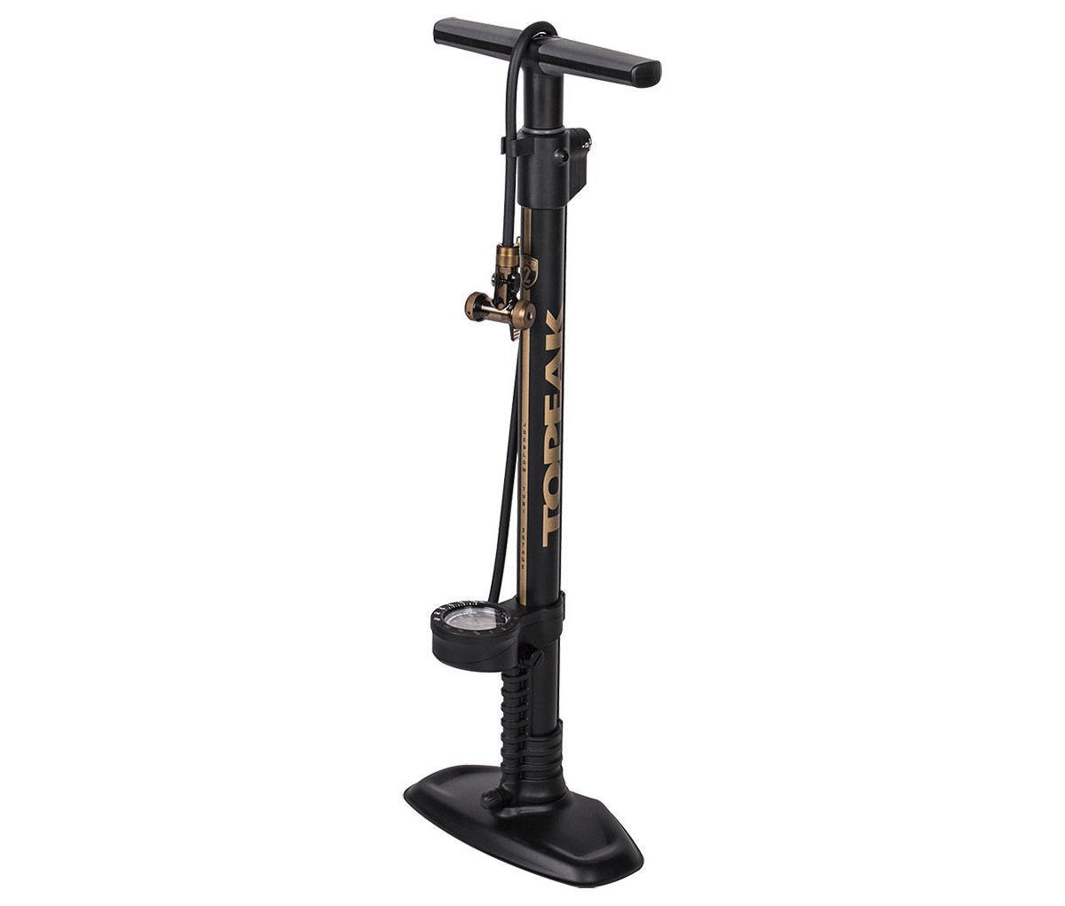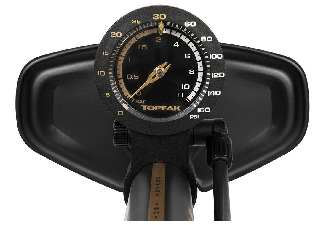 Η τρόμπα είναι εξοπλισμένη με αναλογικό, κεντρικά τοποθετημένο μανόμετρο 3 ιντσών με διπλή κλίμακα, που προσφέρει ακριβείς μετρήσεις για όλες τις βαλβίδες (Presta, Schrader, Dunlop), ενώ η επιπλέον μακριά και περιστρεφόμενη κατά 360° σωλήνα εξασφαλίζει εύκολη χρήση και πρόσβαση σε κάθε τύπο βαλβίδας. Το σώμα της τρόμπας είναι κατασκευασμένο από ανθεκτικό ατσάλι και αλουμίνιο, ενώ η βάση είναι από σκληρυμένο ατσάλι, προσφέροντας σταθερότητα και αντοχή.