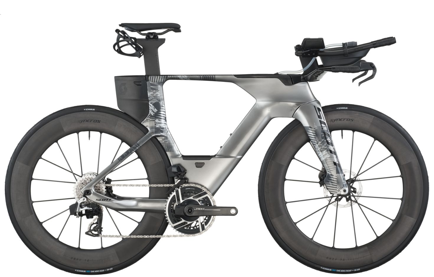Το Scott Plasma RC Ultimate είναι η επιτομή της απόδοσης στην κατηγορία των ποδηλάτων τρίαθλου – ένα μηχάνημα κομμένο και ραμμένο για ακραίες επιδόσεις και απόλυτη αεροδυναμική. Με πλαίσιο και πιρούνι από HMX Carbon και γεωμετρία TRIATHLON, προσφέρει κορυφαία ακαμψία και σταθερότητα, ενώ όλα τα καλώδια είναι πλήρως εσωτερικά για καθαρές γραμμές και ελάχιστη αντίσταση στον αέρα. Η καρδιά του ποδηλάτου είναι το ηλεκτρονικό σύστημα μετάδοσης SRAM RED AXS 2x12 ταχυτήτων, εξοπλισμένο με power meter και απόλυτα ακριβή αλλαγή σχέσεων.