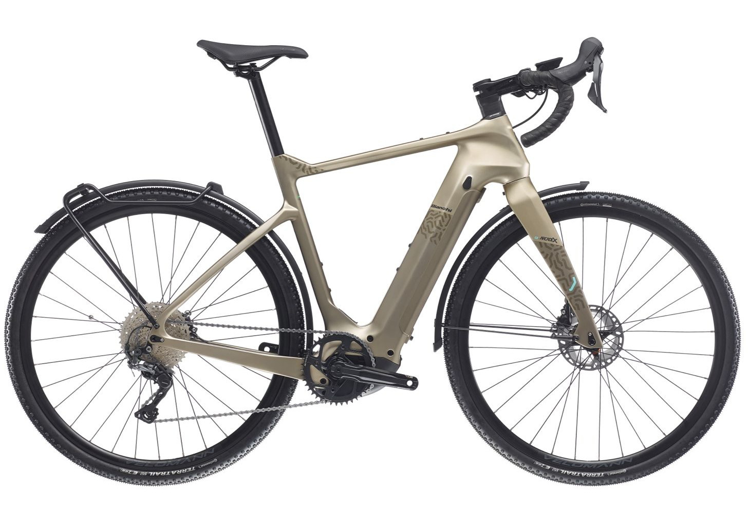 Επιπλέον, το Bianchi e-Arcadex Tourer διαθέτει ενσωματωμένα μπροστινά και πίσω φώτα, λασπωτήρες, πίσω σχάρα και εργονομική σχεδίαση για να απολαμβάνετε τις περιπέτειές σας με απόλυτη άνεση και στυλ.