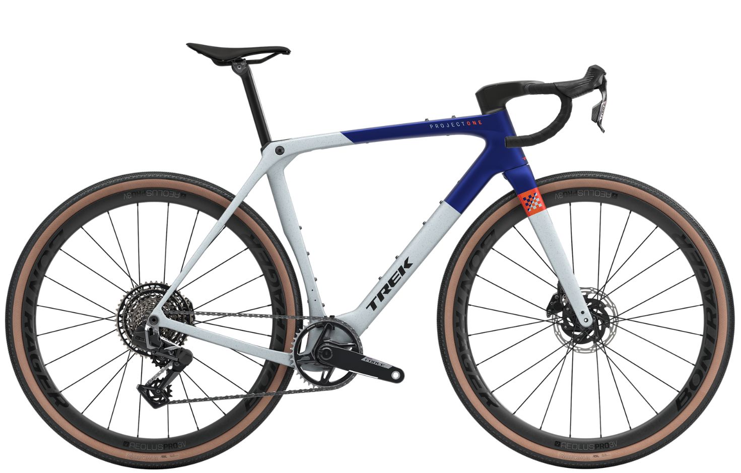 Είναι εξοπλισμένο με ασύρματο σύστημα μετάδοσης SRAM Force XPLR AXS E1, carbon τροχούς και το Trek Aero RSL τιμόνι/λαιμό, προσφέροντας ένα εξαιρετικά ελαφρύ και αγωνιστικό σύνολο.