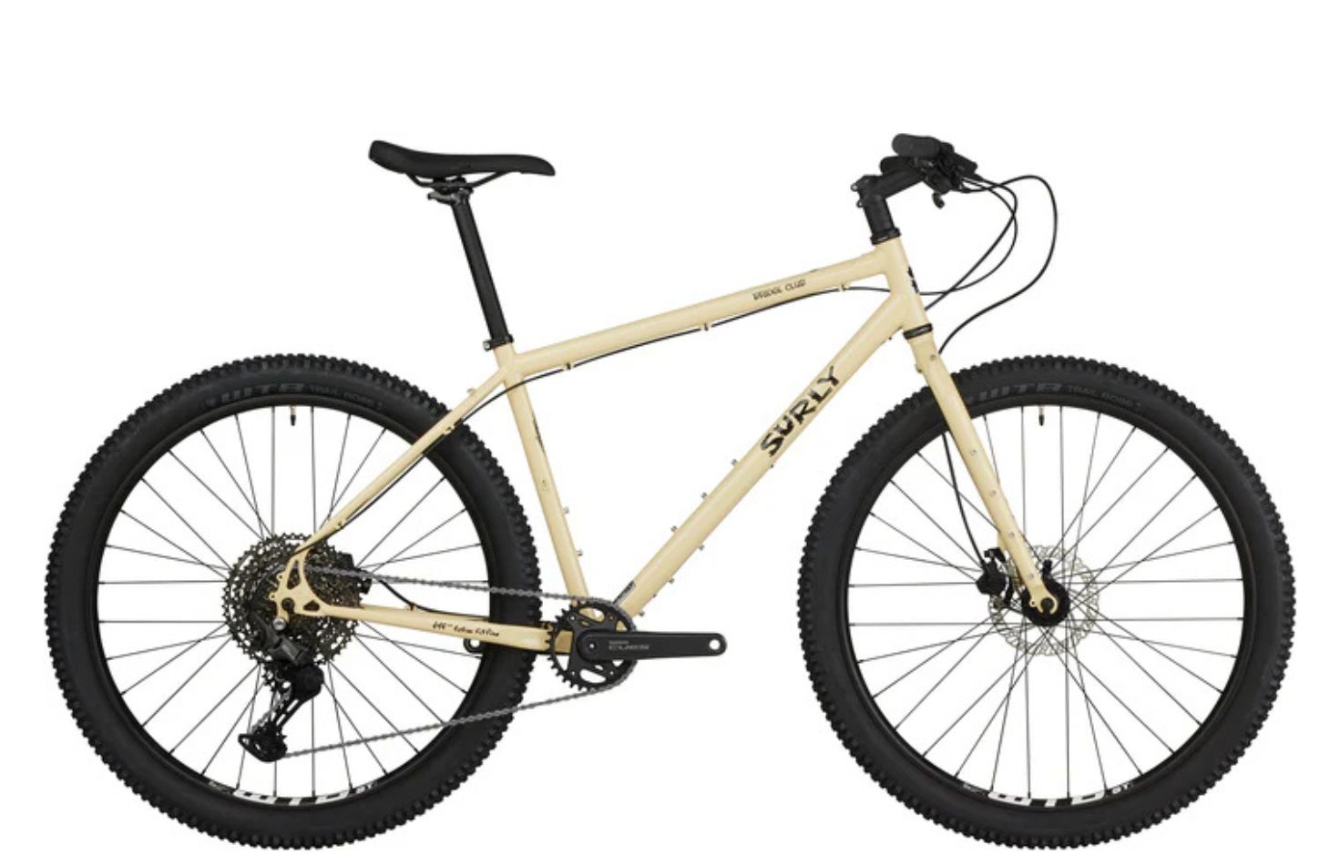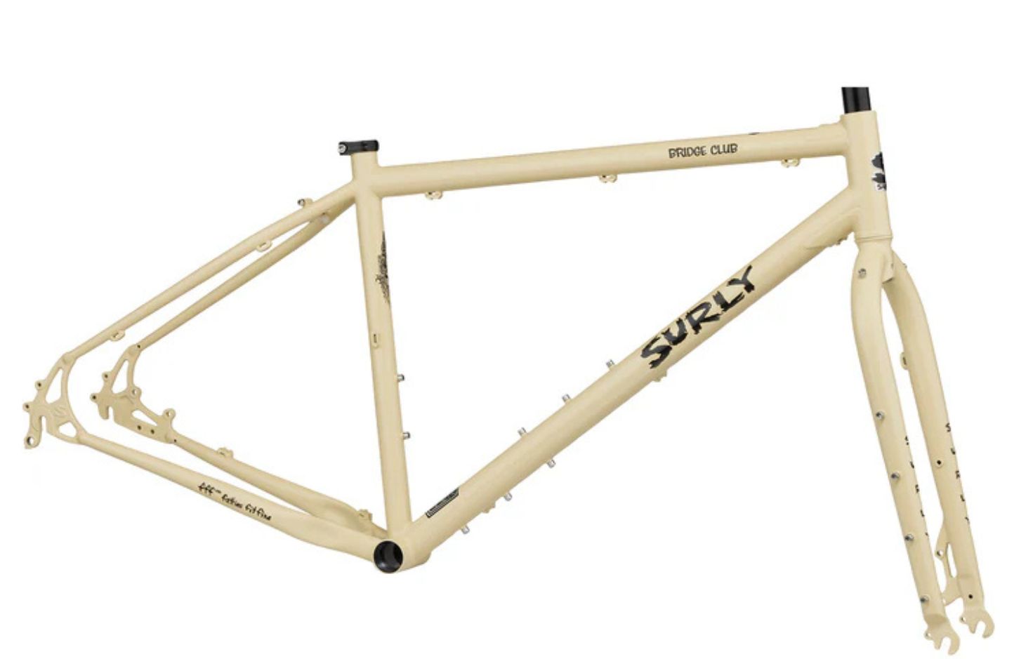 Surly Bridge Club – 4130 Chromoly, σωληνώσεις Natch, διπλής διατομής (double-butted) κύριο τρίγωνο, συγκολλημένο με TIG, με επικάλυψη ED (ηλεκτροστατική αντισκωριακή προστασία).
