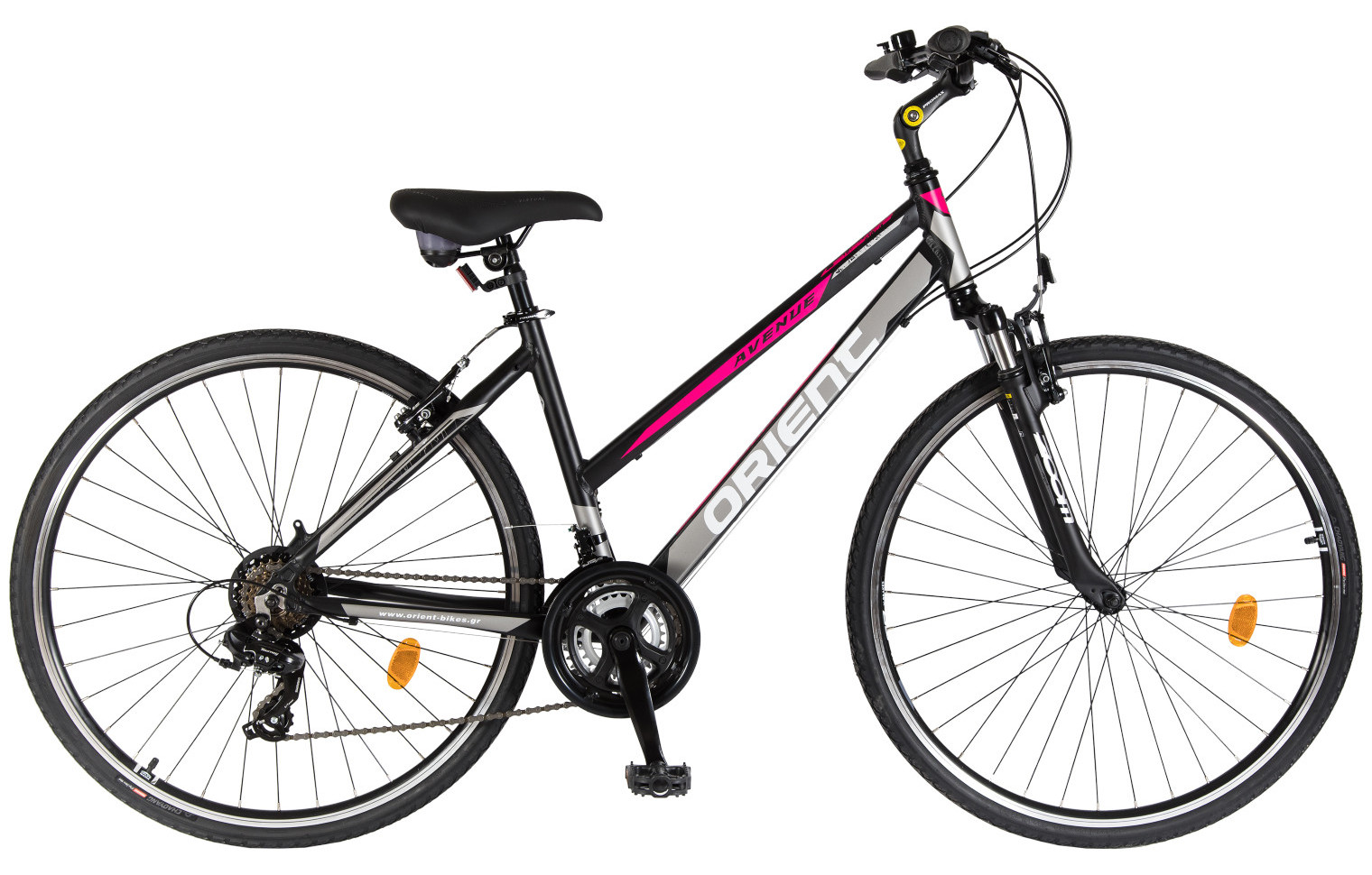 Το Orient Avenue Lady είναι ένα ελαφρύ και αξιόπιστο ποδήλατο πόλης με άνετη γεωμετρία, ιδανικό για καθημερινές μετακινήσεις και χαλαρές βόλτες. Ο σκελετός αλουμινίου 700C προσφέρει αντοχή και ευελιξία, ενώ το εμπρόσθιο πιρούνι Zoom με ανάρτηση 30mm απορροφά τις ανωμαλίες του δρόμου, εξασφαλίζοντας ομαλή ποδηλασία.