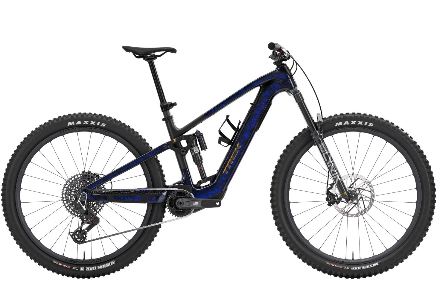 Το Fuel+ EX 9.9 X0 AXS είναι η κορυφή της απόδοσης στα e-MTB, με ευέλικτο χειρισμό και ομαλή υποστήριξη σε κάθε μονοπάτι. Ξεκινά με πλαίσιο OCLV Mountain Carbon και κινητήρα TQ HPR60 που προσφέρει αθόρυβη και φυσική υποβοήθηση. Το πιρούνι RockShox Lyrik Ultimate και το αμορτισέρ Deluxe Ultimate RCT2 (145 mm πίσω, 150 mm μπροστά) εξασφαλίζουν σίγουρο έλεγχο παντού, ενώ η ασύρματη μετάδοση SRAM X0 AXS διατηρεί τις αλλαγές ταχυτήτων ακριβείς ακόμη και υπό φορτίο. Ολοκληρώνεται με ασύρματο dropper post RockShox Reverb και ανθρακονημάτινους τροχούς Bontrager Line Pro 30.