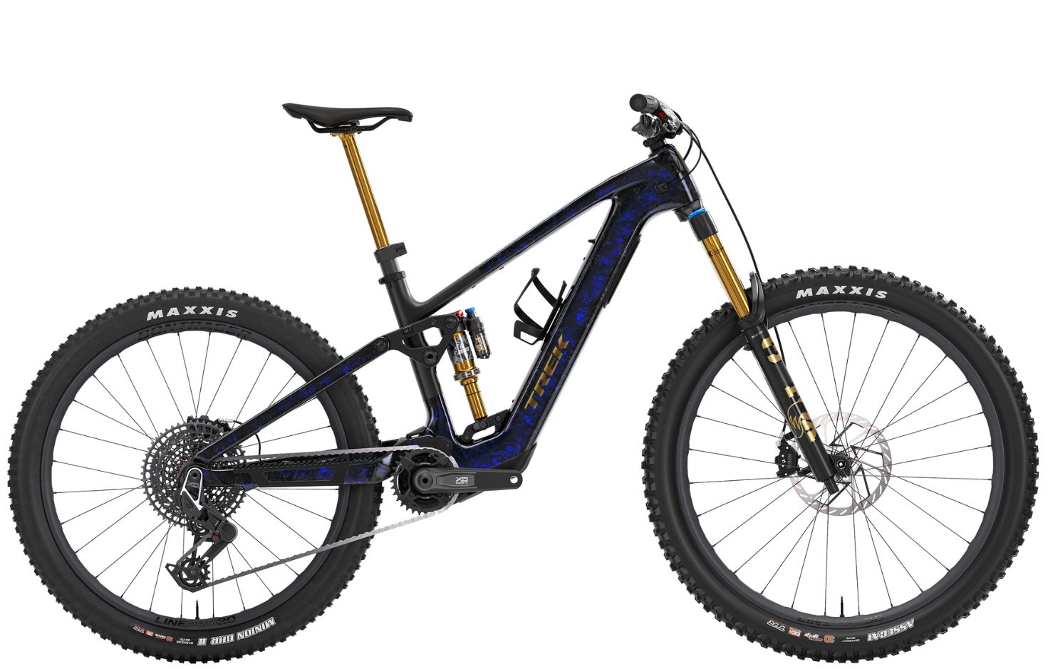 Το Fuel+ MX 9.9 X0 AXS είναι το κορυφαίο μας e-MTB για όσους λατρεύουν το χάος και κυνηγούν την περιπέτεια πέρα από τα γνωστά μονοπάτια. Ξεκινά με πλαίσιο OCLV Mountain Carbon και τον κινητήρα TQ HPR60, εξοπλισμένο με ανάρτηση Fox Factory (150 mm πίσω, 160 mm μπροστά) και τροχούς MX για άγρια οδήγηση στο trail. Διαθέτει τα καλύτερα εξαρτήματα, όπως το ασύρματο σύστημα μετάδοσης SRAM X0 AXS, υδραυλικά φρένα SRAM Mavel Silver 4 εμβόλων, τηλεσκοπική σέλα Fox Transfer NEO και ανθρακονημάτινους τροχούς Bontrager Line Pro 30.