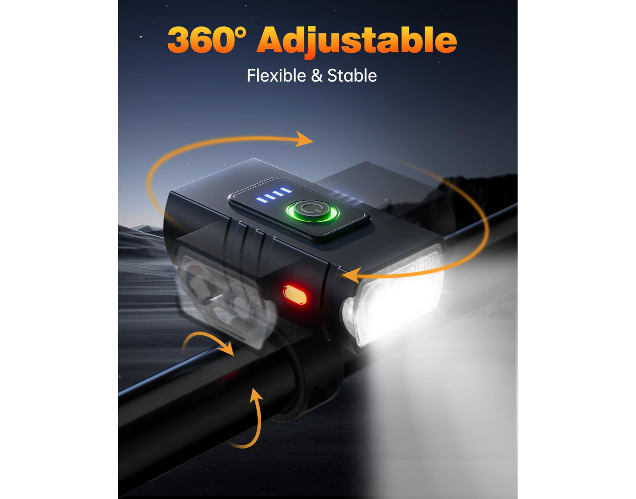 Ο φωτισμός είναι εξαιρετικά ισχυρός, χάρη στους δύο LED υψηλής φωτεινότητας που παρέχουν συνολική φωτεινότητα 1500 lumens. Αυτή η φωτεινότητα, σε συνδυασμό με την ευρεία γωνία διάχυσης 180°, εξασφαλίζει ότι θα είστε ορατοί από μεγάλη απόσταση, προσφέροντας επιπλέον ασφάλεια κατά τη διάρκεια της νύχτας.