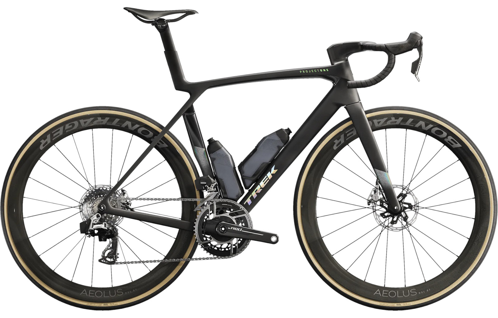 Αυτό το ποδήλατο είναι έτοιμο να κερδίσει με το κορυφαίο σύστημα μετάδοσης κίνησης SRAM RED AXS με powermeter, Carbon τροχούς, ένα ενιαίο carbon λαιμό/τιμόνι Trek Aero RSL και παγούρια με παγουροθήκες RSL Aero που μειώνουν περαιτέρω την αντίσταση του αέρα.