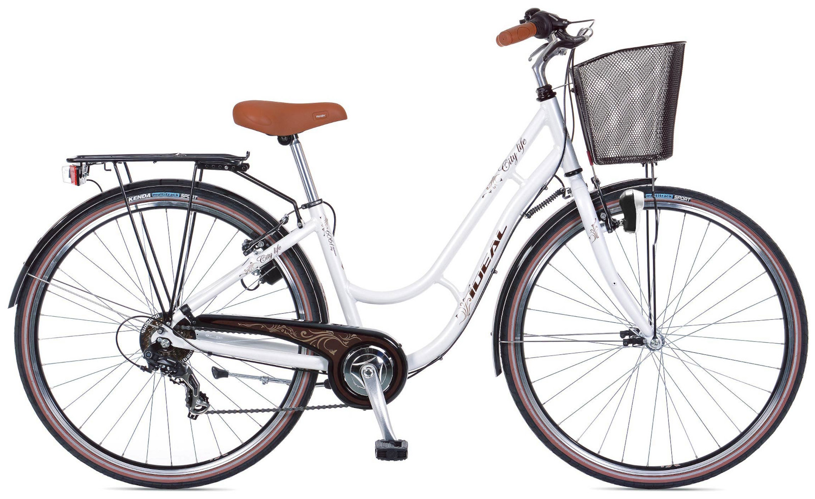Διαθέτει 7 ταχύτητες Shimano, με εύκολη εναλλαγή μέσω revo shifter, και V-brakes της Saccon για άμεσο φρενάρισμα. Τα ελαστικά Kenda με ανακλαστικές λωρίδες αυξάνουν την ορατότητα, ενώ τα φώτα AXA (10 Lux μπροστά και LED πίσω) και τα πρακτικά αξεσουάρ όπως σχάρα, καλάθι και λασπωτήρες κάνουν το Citylife πλήρως εξοπλισμένο για άνετες και ασφαλείς διαδρομές στην πόλη.